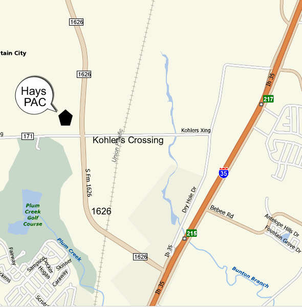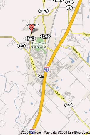From IH35 exit 215, take RM 1626 to the west until the stop sign at Kohlers Crossing.